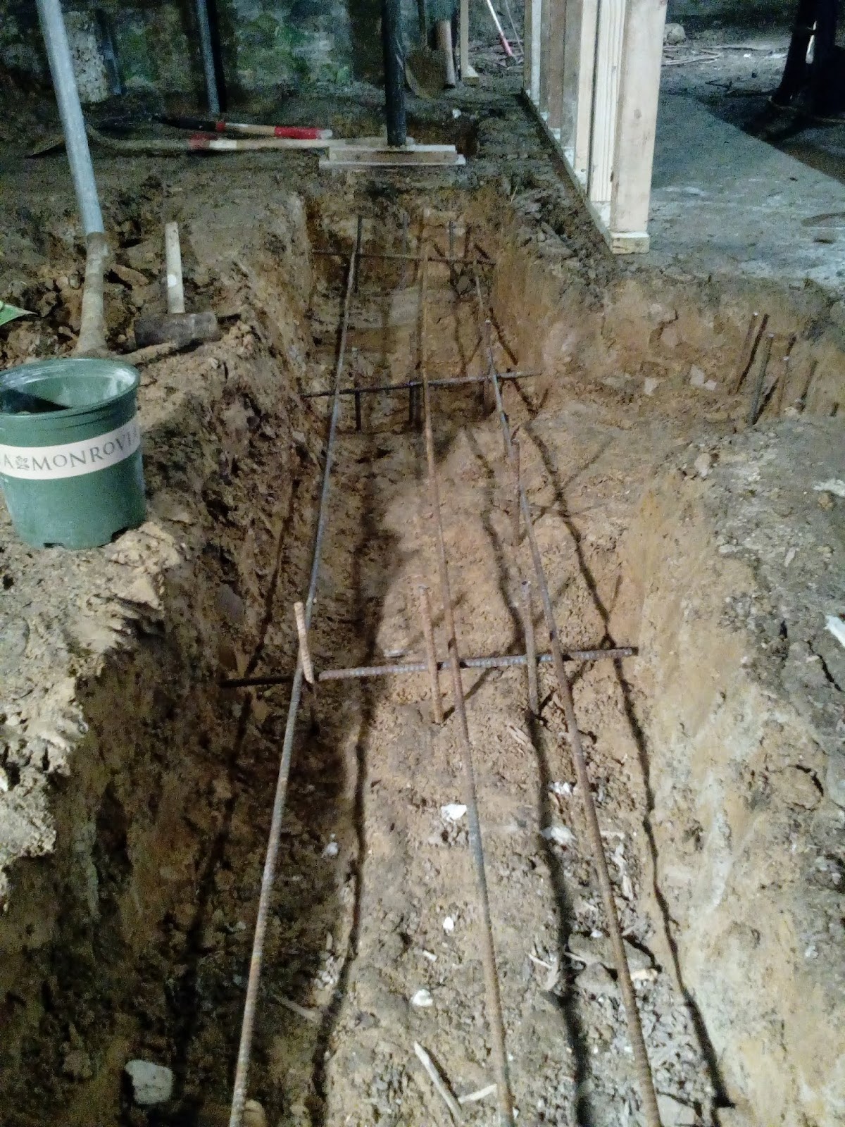 Digging channels for the new footings.